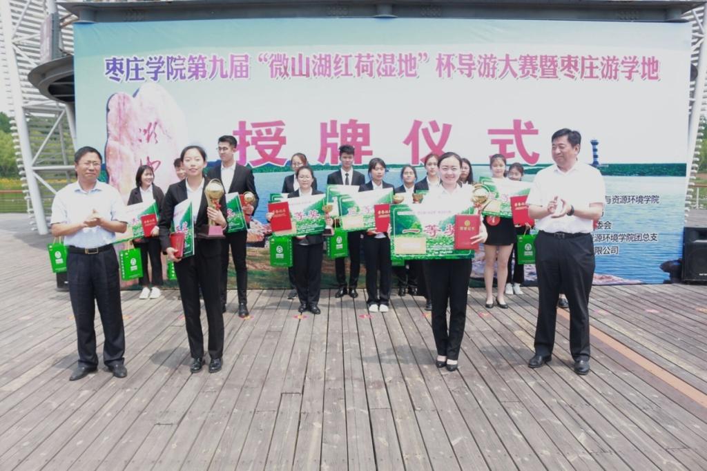 为丰富校园文化,提升同学们专业素质和实践能力,5月19日,由yl23411永利团委主办、永利yl23411集团和微山湖湿地红荷风景区承办的yl23411永利第九届“微山湖红荷湿地杯”导游大赛在微山湖红荷湿地景区举行。永利yl23411集团部分教师、学生代表,枣庄市文化和旅游局副调研员黄国清,微山湖湿地集团董事长刘晋军,微山湖红荷湿地景区部分工作人员参加本次活动。