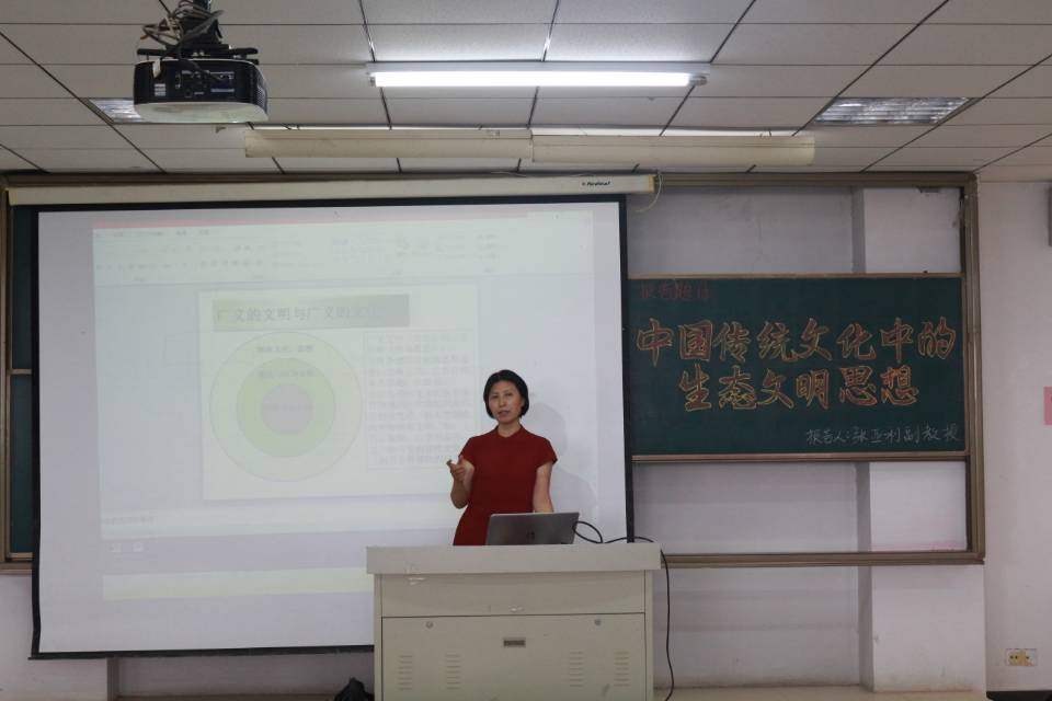为增长同学们的专业知识,提高同学们的学术研究能力,增强我院学术氛围,2019年6月5日下午,永利yl23411集团在理工楼2505开展了以“中国传统文化中的生态文明思想”为题目的学术报告会,张亚利副教授担任本次学术报告会的主讲人,2018级全体本科生参加此次学术报告会。