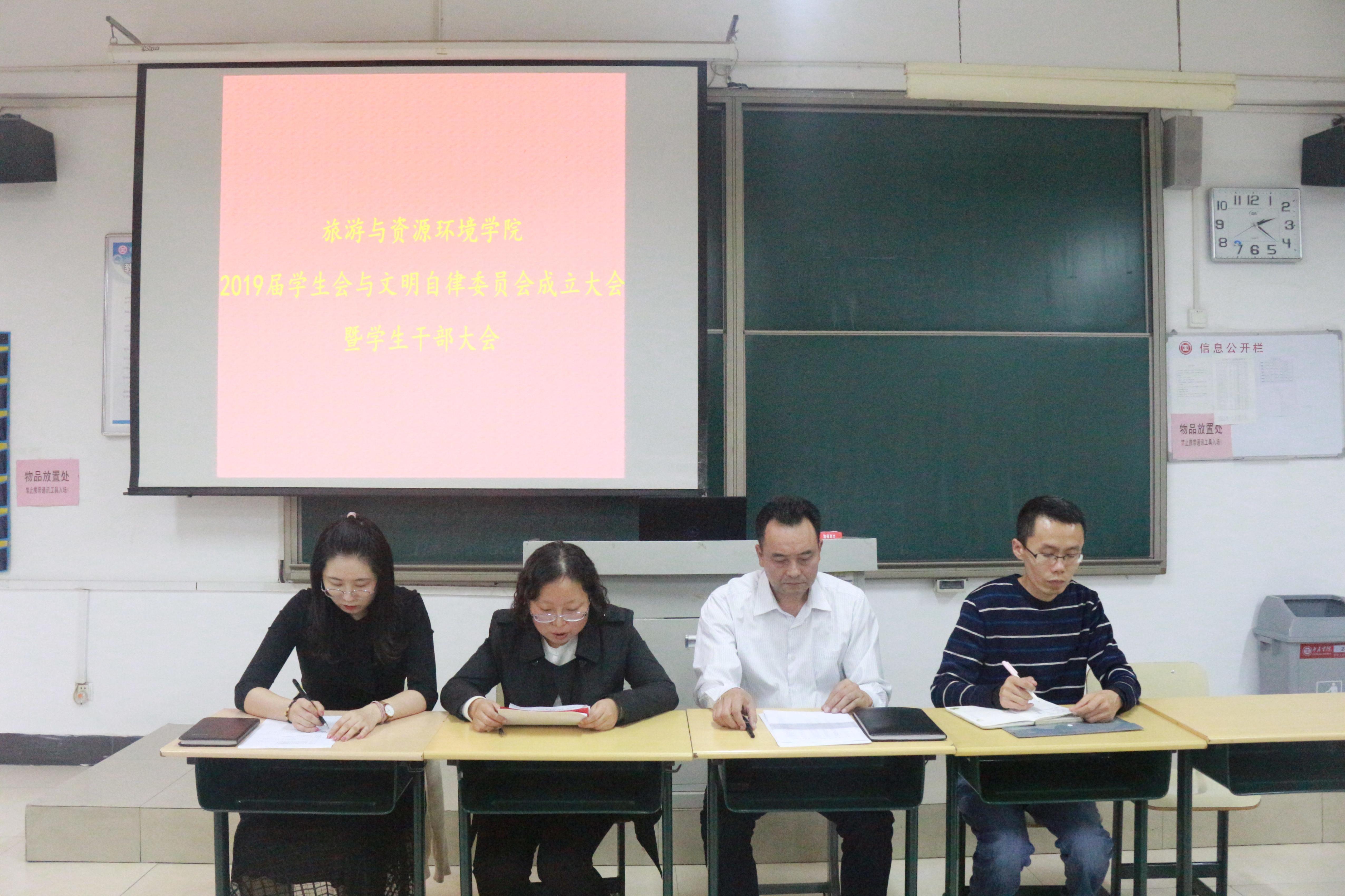 会议伊始,2018届学生会主席管栗庆发言,就2018年的工作进行详细总结。李蕾蕾老师宣读2019届学生会干部和文明自律委员会干部名单。孙守超书记及三位老师为2019届学生会干部及文明自律委员会干部颁发聘书,并向他们表示祝贺。随后,2019届学生会主席张珊珊发言,具体阐述了对未来工作的设想。