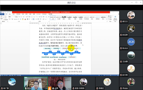 首先“地图与测量”课程教学团队负责人杜霞介绍了此次教学创新大赛的准备情况。随后程钰教授从教学痛点、教学设计、教学举措、课程思政、教学评价与推广等方面进行了有针对性的辅导,并指出创新报告应突出课程自身的特色。最后,程钰教授根据自身参赛经验,对创新大赛课程录课环节提出了指导意见。