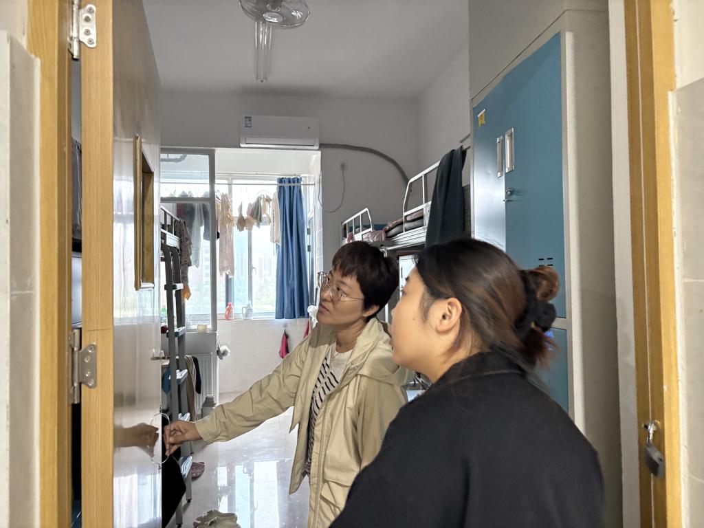 本次检查重点关注用电安全、物品摆放及环境卫生情况,学院领导与老师一同走进宿舍,针对违规电器使用、插排上床、通道堵塞、垃圾积存等具体问题展开细致排查。针对检查中发现的安全隐患和卫生问题,老师们现场提出整改要求,强调人走断电、严禁使用违规电器、及时清理杂物与垃圾,并对相关学生进行了用电与消防安全教育。检查之余,老师与学生们亲切交谈,关心学生们的学习生活近况,叮嘱大家要严守校规,养成良好卫生习惯,要以饱满的精神状态投入日常学习。