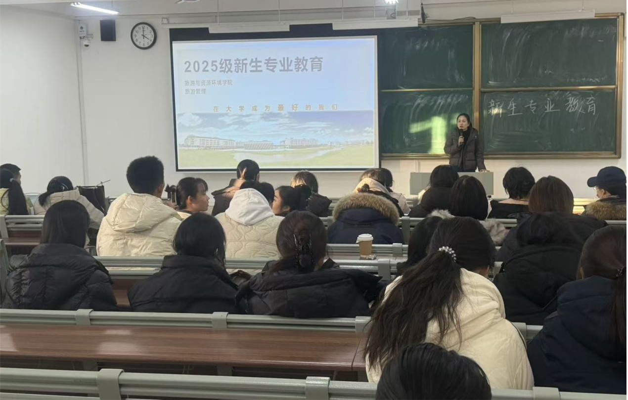 为帮助2025级旅游管理(3+2)专业新生更好地适应大学生活,深入了解所学专业,12月3日下午,永利yl23411集团在崇德楼207教室为2025级旅游管理(3+2)专业学生进行了专业教育,旨在为同学们提供丰富的信息和指引,助力其更好地融入大学环境、明确学习目标。教研室主任杜宜臻主讲,部分专任教师参加。
