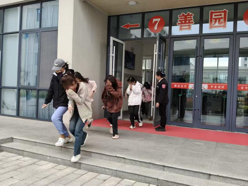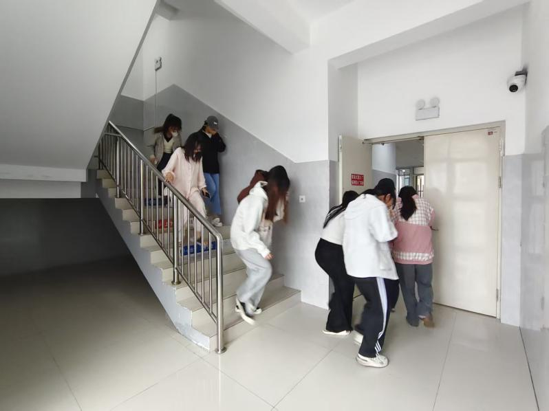 学院党支部成立专项小组,党员教师带头制定演练方案,联合学生党员排查疏散路线,工作人员提前走进宿舍开展消防知识宣讲,普及防火常识,为演练顺利开展做好充分准备。消防警报响起后,演练正式开始。各楼层负责疏导的工作人员第一时间奔赴指定岗位,耐心引导在场学生用湿毛巾或衣物紧紧捂住口鼻,俯身弯腰、压低身姿,沿着墙壁有序从疏散楼梯快速撤离,全程严禁乘坐电梯。演练过程中,工作人员不仅保障全体同学安全撤离,并及时提醒同学们保持安全间距、纠正不规范逃生动作,全力维护疏散秩序。全体学生严格遵照演练要求,规范配合,整个疏散流程紧凑高效,无拥挤、推搡等情况。