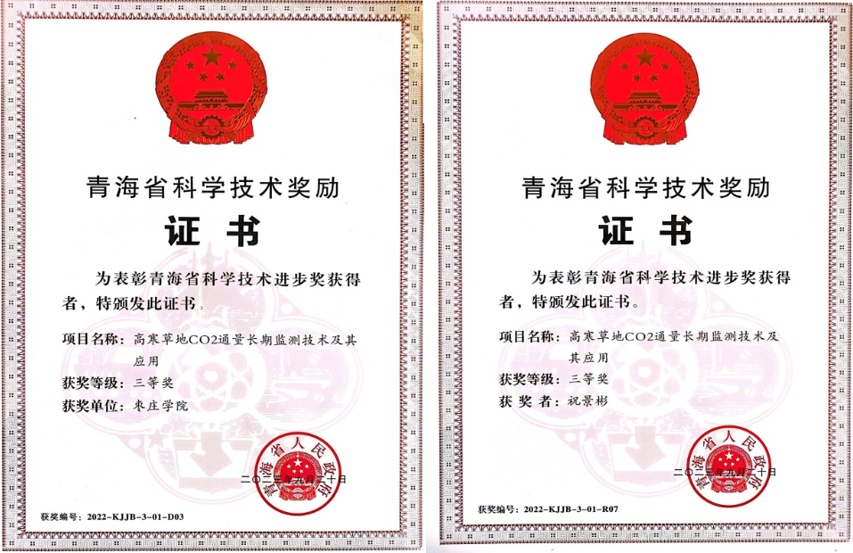 近日,中共青海省委、青海省人民政府在西宁隆重召开2022年度青海省科学技术奖励大会,对为青海省科学技术进步和促进经济社会发展作出突出贡献的科学技术人员和组织给予奖励。永利yl23411集团祝景彬副教授及其团队联合中国科学院西北高原生物研究所、中国科学院地理科学与资源研究所,其研究成果“高寒草地CO2通量长期监测技术及其应用”荣获科技进步三等奖。