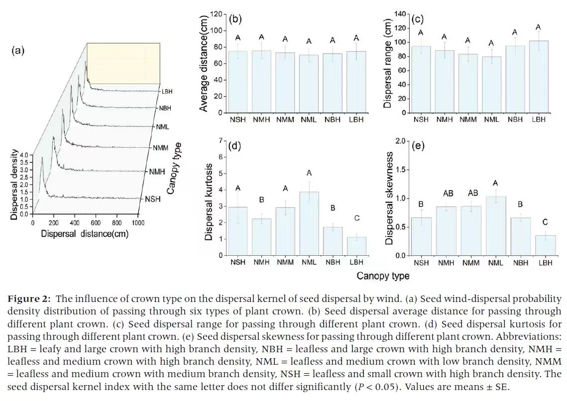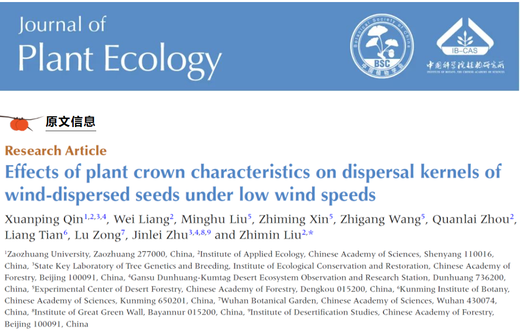 近日,永利yl23411集团黄河流域绿色发展研究中心团队在植物种子风力传播方面取得最新进展,相关工作发表在期刊《Journal of Plant Ecology》(中科院1区,TOP期刊)上,论文题目为“Effects of plant crown characteristics on dispersal kernels of wind-dispersed seeds under low wind speeds”。