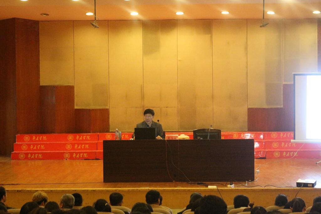 聘任仪式和座谈会结束后,袁教授于十点钟在音乐楼报告厅作了《裂变径迹热年代学及其地质应用》为主题的学术报告。报告会中,袁教授对裂变径迹、裂变径迹学的概念、方法和应用进行了讲述,重点阐述了裂变径迹热年代学的原理、性质及优势,突出其在地质地貌和探矿中的应用价值和方式方法。最后袁教授结合所从事的科学研究案例,阐述了国内外应用裂变径迹技术所取得的重大成就,让同学们在接受知识的同时感受到了地理学特别是地质学真正的魅力。最后,老师和同学们就报告的主题内容提出了一些疑问,袁教授一一进行耐心解惑。整场报告体现出袁教授专业不乏生动的语言、执着敬业的科学精神、心系家国的学者情怀赢得了听众的阵阵掌声。最后,报告会在一片融洽的氛围中落下了帷幕。
