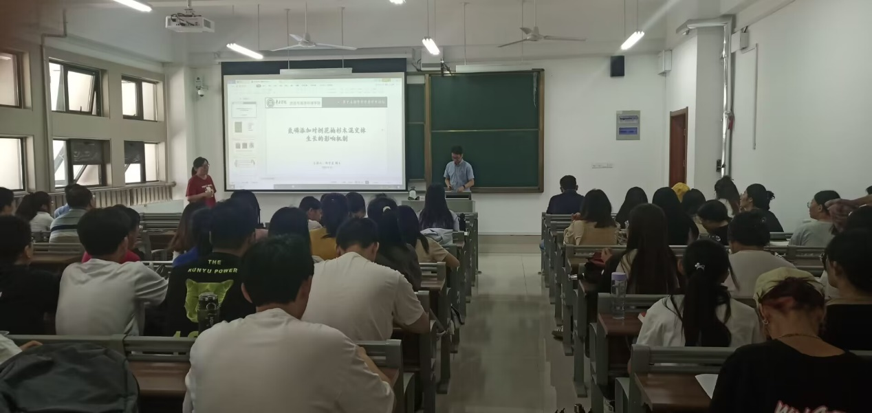 报告会上,邹宇星博士作了题为“氮磷添加对刨花楠杉木混交林生长的影响机制”的学术报告,介绍了氮磷添加和混交对刨花楠、杉木生长的影响机制。以我国特有的珍贵乡土树种刨花楠和人工林种植面积最大的珍贵经济树种杉木为研究对象,对其进行混交造林和氮磷添加试验,通过野外调查和样品采集,分析氮磷添加与混交对林地土壤理化性质、微生物群落结构及林木细根、叶片功能性状的影响。研究发现刨花楠和杉木之间存在着积极的相互作用,归因于该两树种在吸收根、叶片和生长水平上的资源权衡策略的分离。相比于氮磷添加,混交对林地土壤、微生物和林木生长、叶和根功能性状的影响更显著。氮磷添加和混交通过影响与N相关的林地土壤理化性质(DON、NO3--N、NH4+-N、NAG)和林木功能性状(LNC)调控刨花楠生长,通过影响与N相关的林地土壤理化性质(SC:N、NH4+-N)调控杉木生长产生影响。这些研究结果可为刨花楠和杉木人工混交林的科学经营和管理提供理论支撑和科学依据。