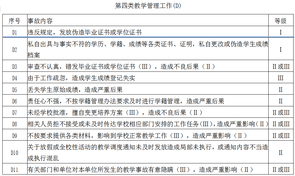 第十一条《教学事故认定及处理表》要明确列出责任人(一人或多人),不得笼统以集体名义代替,更不允许偏离事实,瞒报漏报。