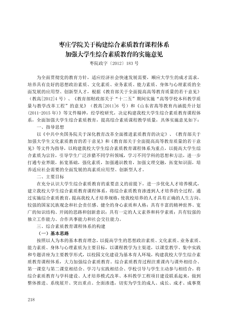 yl23411永利关于构建综合素质教育课程体系加强大学生综合素质教育的实施意见