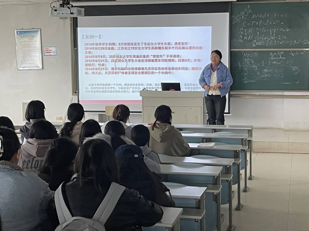 讲座伊始,针对女生恋爱教育,邵园园结合PPT及视频,从树立正确的恋爱观及掌握理性的爱情行为方式等方面进行详细讲述,教育引导女生自强、自爱、自尊、自重。同时,邵园园通过案例分析、法律科普等多角度,围绕出行、住宿、兼职及盗窃四个方面指出女生在安全防范中普遍存在的问题并剖析原因,积极引导女生加强安全防范意识和提高应变风险能力,更好地保护自身安全,构建和谐校园。