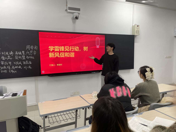 会上,学生党员结合ppt,围绕雷锋的生平和雷锋精神的内涵,从不同角度对新时代雷锋精神的理解进行阐述,带领同学们重温雷锋同志身上体现出的钉子精神、爱岗敬业精神、艰苦奋斗精神、勤俭节约精神、锐意进取和自强不息的创新精神,号召全体同学要以雷锋为榜样,做到关心他人、乐于助人、无私奉献,用自己的实际行动诠释雷锋精神的深刻内涵。同时各班级还结合自身实际情况,开展形式多样的学雷锋活动,如义务劳动、志愿服务、帮扶困难同学等,同学们积极参与,用实际行动践行雷锋精神。