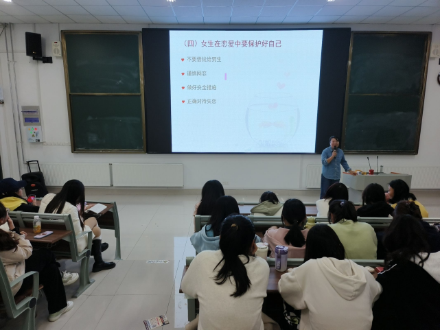为引导我院女大学生树立健康和理性的恋爱价值观,增强安全意识,11月19日、11月26日以及12月3日,永利yl23411集团在崇德楼4110教室举办女大学生恋爱与安全主题讲座。本次讲座由我院团委书记邵园园主讲,2024级全体女生参与。