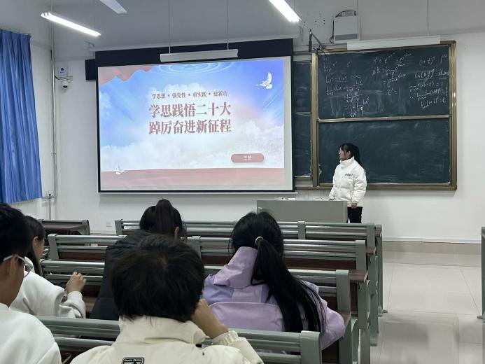 《学思践悟二十大,踔厉奋进新征程》主题课程由我院团学干部王慧主讲,主讲人详细阐释二十大的战略定位、实践基础、理论指导、团结要求等核心内容,为学员们深入浅出地剖析了二十大报告的精神实质,引导学员们将党的二十大精神融入到今后实践学习中,为实现中华民族伟大复兴的中国梦不懈奋斗。