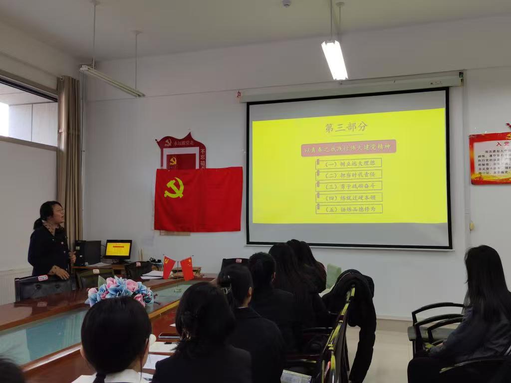 《弘扬伟大建党精神,践行青年历史使命》主题课程由我院团委书记邵园园主讲,主讲人从红色经典故事出发,通过引用名人名言、列举具体事例,详细地介绍伟大建党精神的发展历程,由浅入深,循序渐进地引出伟大建党精神的丰富内涵,带领党员从思想高度、理论深度、行为广度等方面,感悟青年使命担当,激发学生前行动力。主讲人强调,伟大建党精神是我们全面认识和把握中国共产党为什么能的一把“金钥匙”,广大青年学子要在笃行中加深领悟,赓续奋斗精神,做堪当大任的新时代青年。