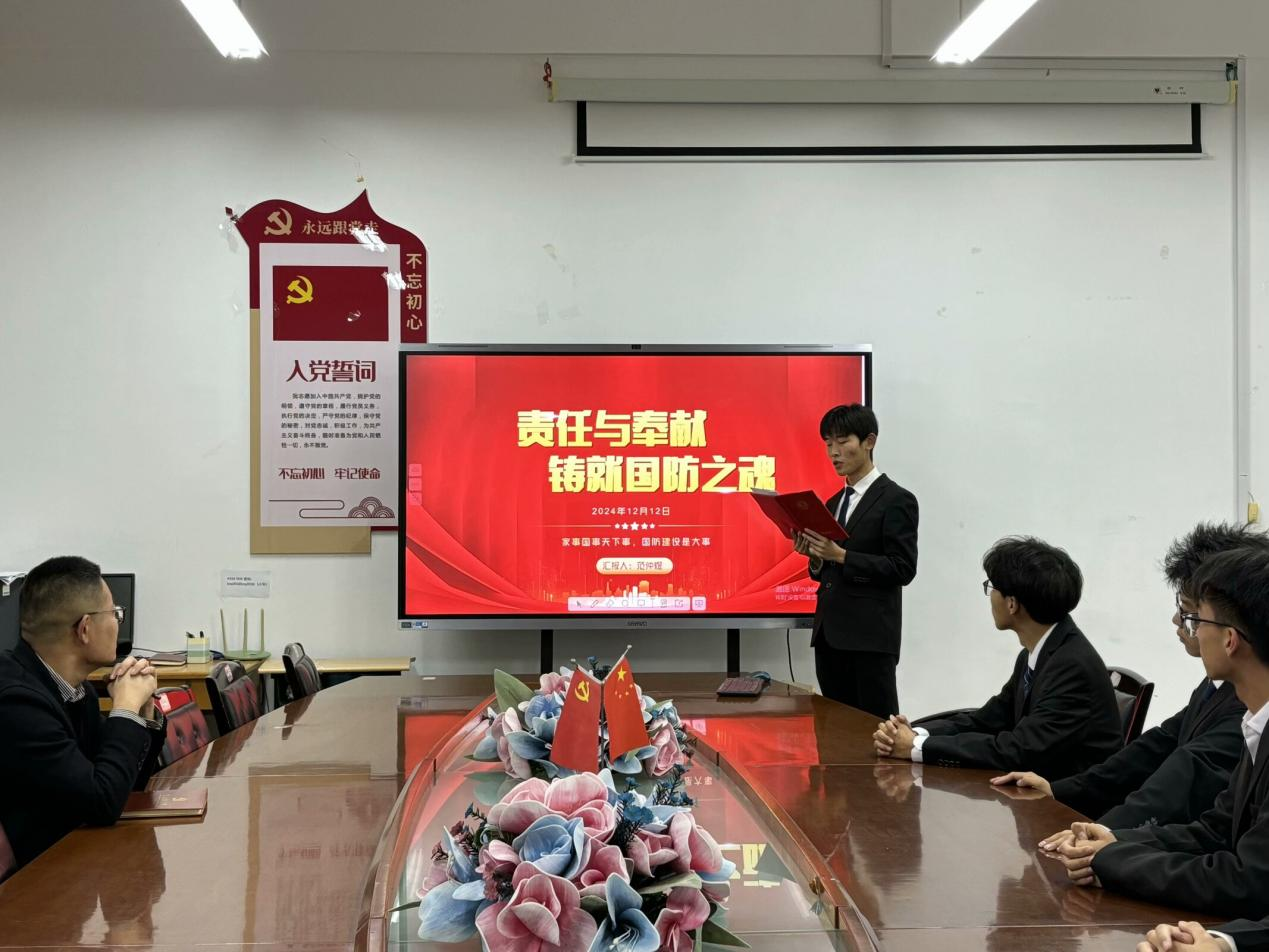 为进一步强化国防教育,引导青年学生厚植家国情怀,12月12日,永利yl23411集团学生党支部在豁然楼A415会议室开展“爱我国防”主题演讲比赛,辅导员老师范增良、周赢、冯淑鹃出席本次活动,我院学生党员积极参加。