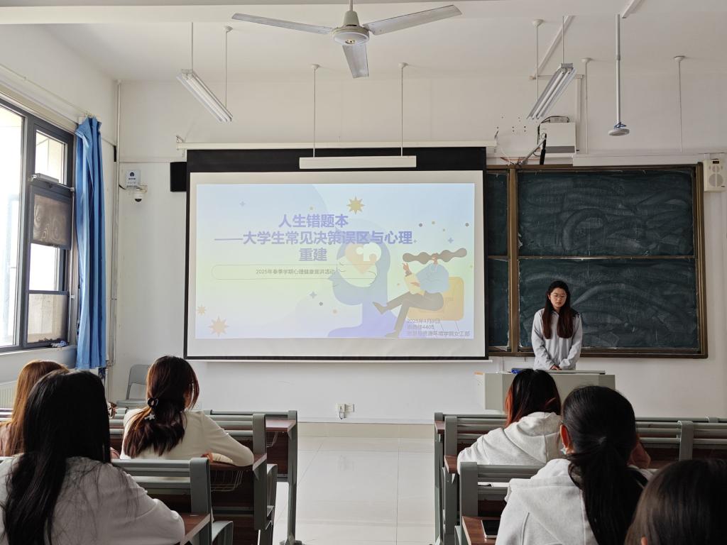 为响应全国高校心理健康教育的号召,提升大学生心理调适能力,营造积极向上的校园氛围,4月9日,永利yl23411集团在崇德楼405教室开展“人生错题本:大学生常见决策误区与心理重建”主题心理健康讲座,我院24级全体学生参与学习。