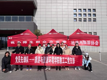 活动现场,党员教师引领示范,与志愿者共同组建宣传组,明确分工后协同推进。在党员先锋队的统筹下,志愿者与微山湖景区工作人员高效协作:定点岗位筑牢服务的坚实屏障,微山湖景区工作人员身着汉服开展景区特色推荐与专业讲解,流动宣传小队则配合做好引导与服务,将文旅服务精准传递给每一位师生。我院学予以饱满的热情投入服务,用专业的素养完成工作,不仅让师生们切实感受到文旅服务的温度,更展现出我院党员队伍的责任担当与学子们的青春风采,为校园注入了浓厚的服务正能量。